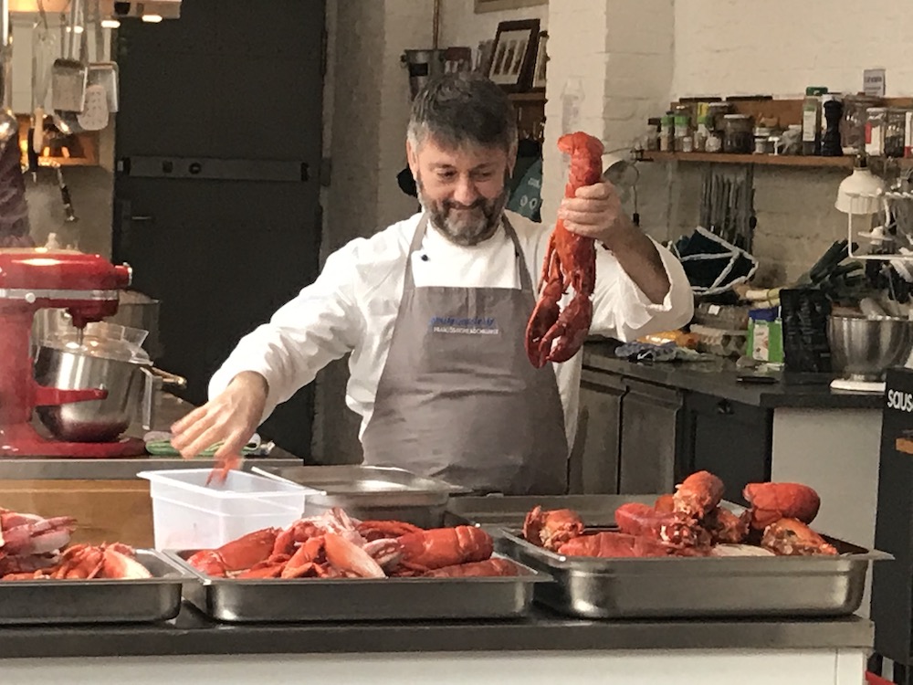 Zu Beginn genießen wir gemeinsam ein Amuse bouche zum Apéritif und lernen uns kennen. Dann erklärt Claude das Menü und den Ablauf das Abends. Danach bereitet ihr unter seiner Anleitung in kleinen Gruppen das Hummer-Menü zu. Dafür bekommt jeder einen Hummer. Leihschürzen liegen bereit. Wenn ihr als Kleingruppe teilnehmt, solltet ihr euch auf verschiedene Kochteams verteilen, um möglichst viel Know how mitzunehmen.